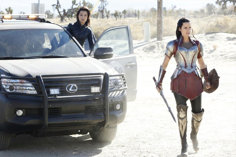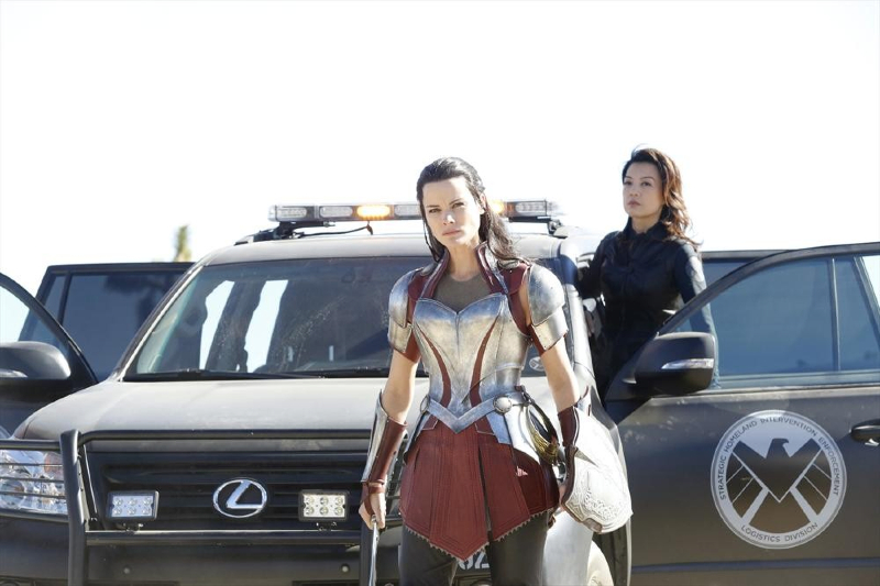 ABC et Marvel Entertainment viennent tout juste de publier les premières photos promo pour l’épisode 15 de la saison 1 de Marvel’s Agents of S.H.I.E.L.D. dans lequel on retrouvera l’actrice Jaimie Alexander qui interprète le rôle de Lady Sif dans les films « Thor » et Elena Satine dans le rôle de sa cible, Lorelai.